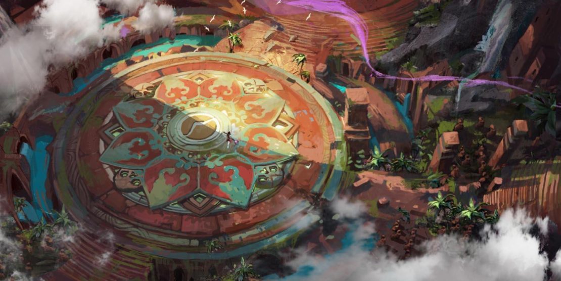 Aesthetics are of course central, as explained by Ronan Berlese, Art Director of Spellcasters Chronicles, who details the creative journey behind this spiritual location: “This arena draws on mystical inspirations—it’s the idea of a temple lost in the middle of nowhere. I was inspired by cenotes, these natural sinkholes filled with water, used by ancient civilizations as places of worship where relics and bones were thrown. When designing this arena, I started from a closed, solemn place, but I didn’t want it to feel gloomy, even though it deals with the opposition between demons and gods, the relationship with death, and titanic battles.”